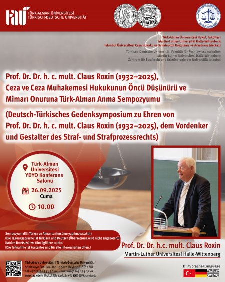 Deutsch-Türkisches Gedenksymposium zu Ehren von Prof. Dr. Dr. h. c. mult. Claus Roxin (1932–2025), dem Vordenker und Gestalter des Straf- und Strafprozessrechts