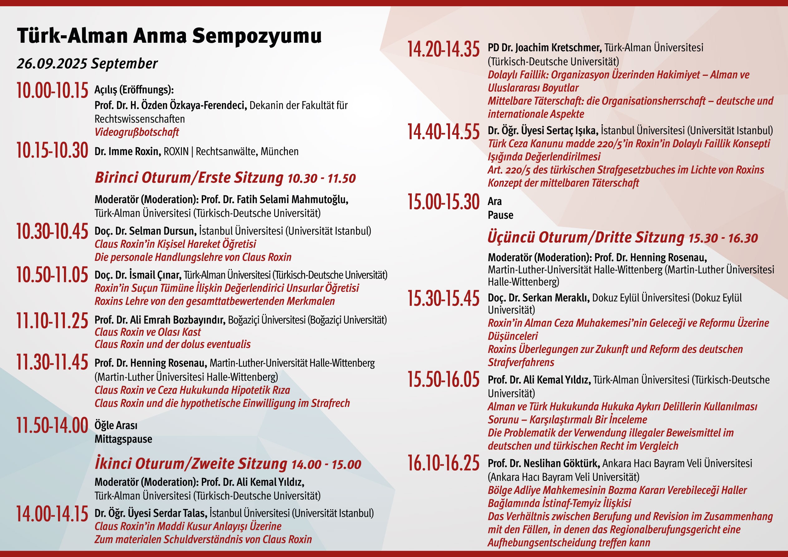 Deutsch-Türkisches Gedenksymposium zu Ehren von Prof. Dr. Dr. h. c. mult. Claus Roxin (1932–2025), dem Vordenker und Gestalter des Straf- und Strafprozessrechts