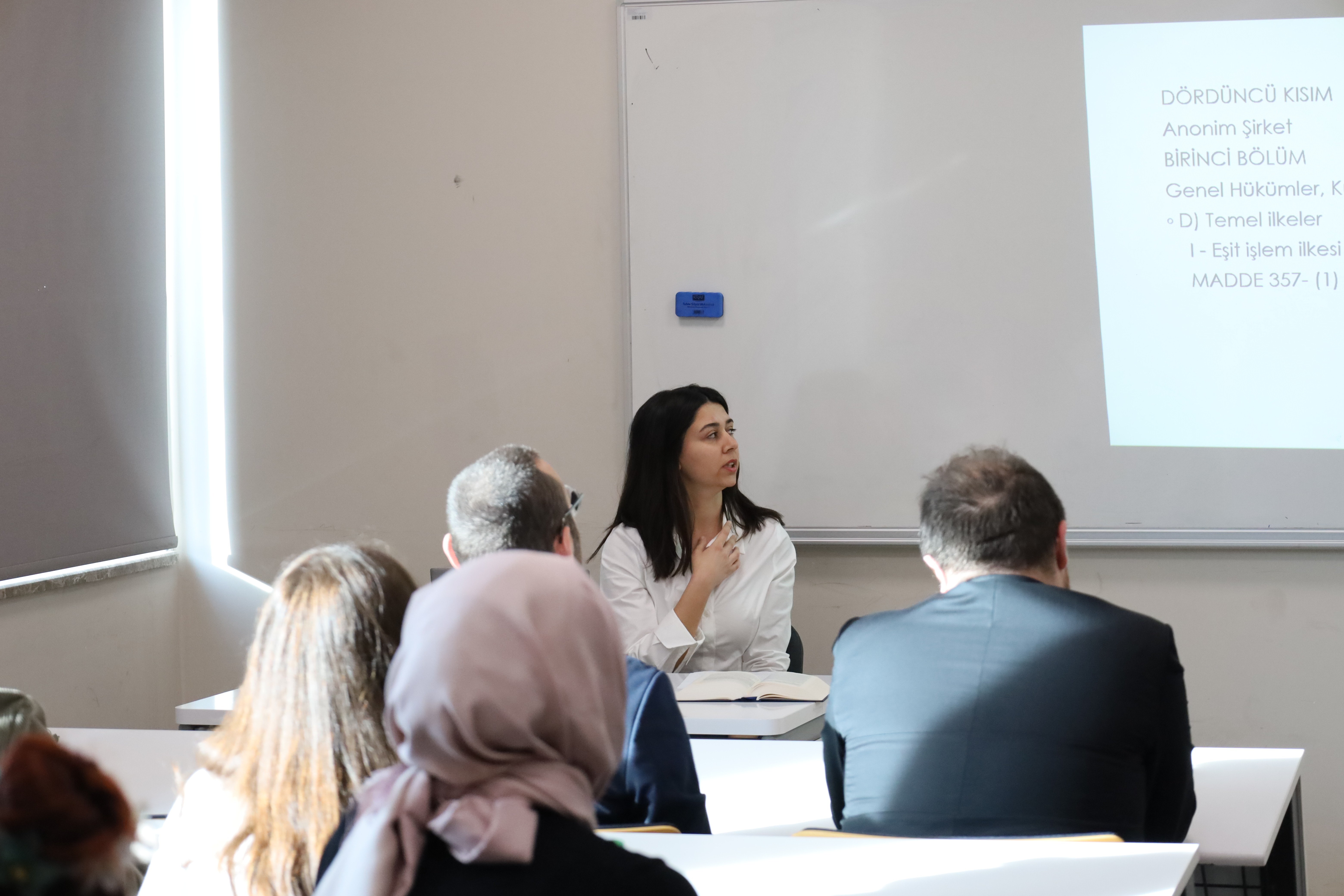 Özel Hukuk Bölümü / Ticaret Hukuku Dalı araştırma görevlisi Arş. Gör. Zehra Büşra KAYAÖZÜ “Anonim Şirketler Hukukunda Eşit İşlem İlkesi” konulu sunumunu yapmıştır.