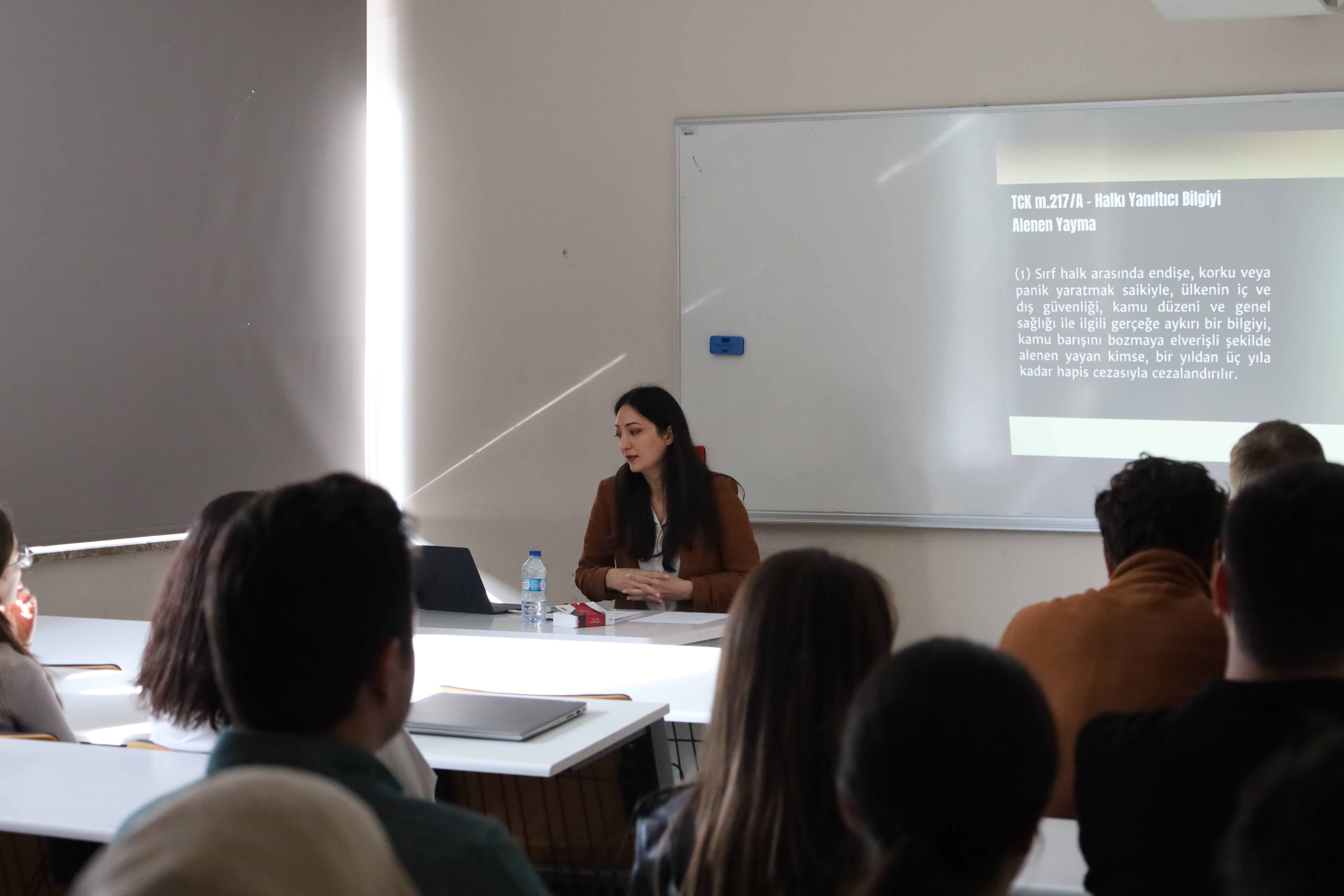 Kamu Hukuku Bölümü / Ceza ve Ceza Muhakemesi Hukuku Anabilim Dalı araştırma görevlisi Aslı Ekin YILMAZ “Halkı Yanıltıcı Bilgiyi Alenen Yayma Suçu (TCK m.217/A)” konulu sunumunu yapmıştır.