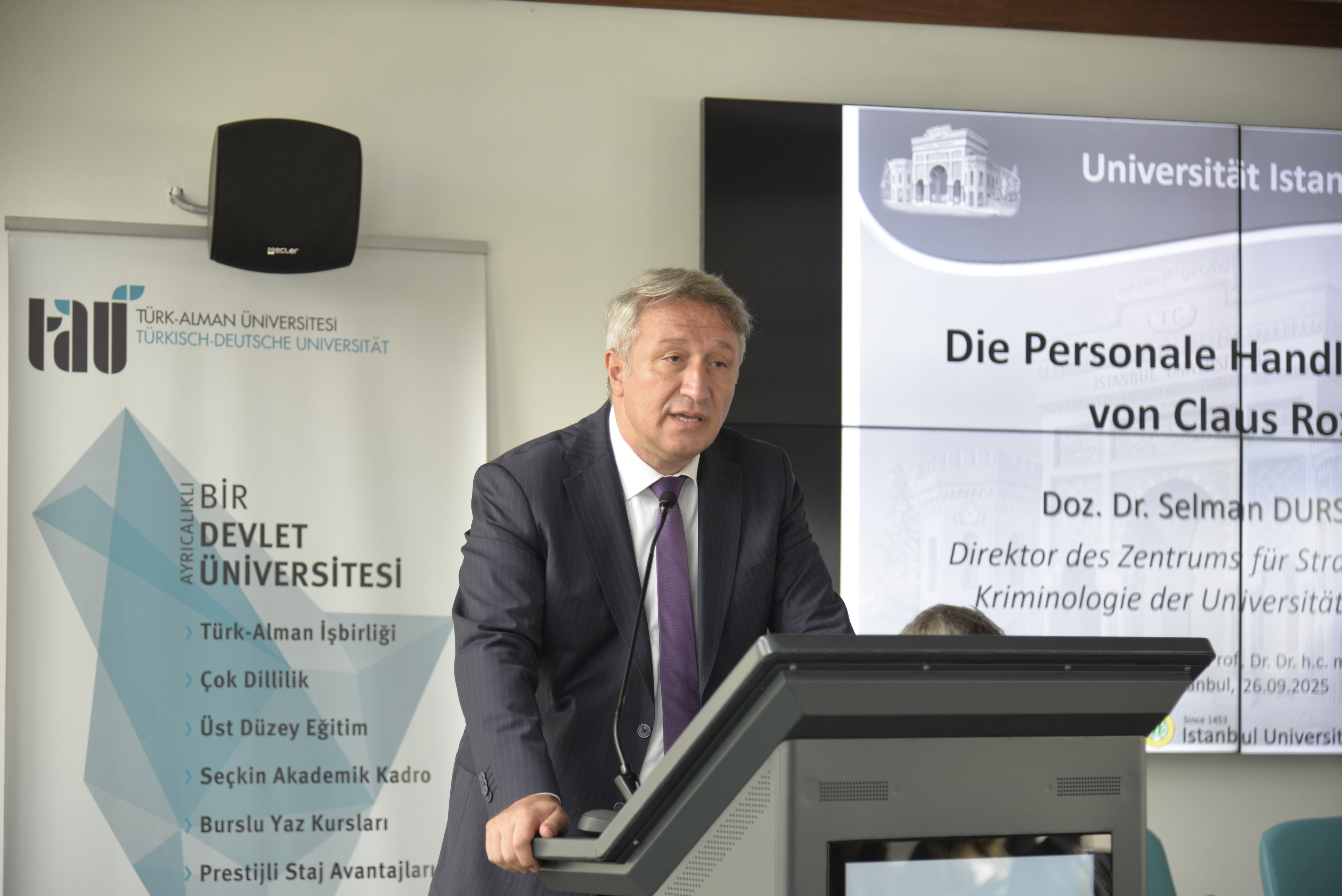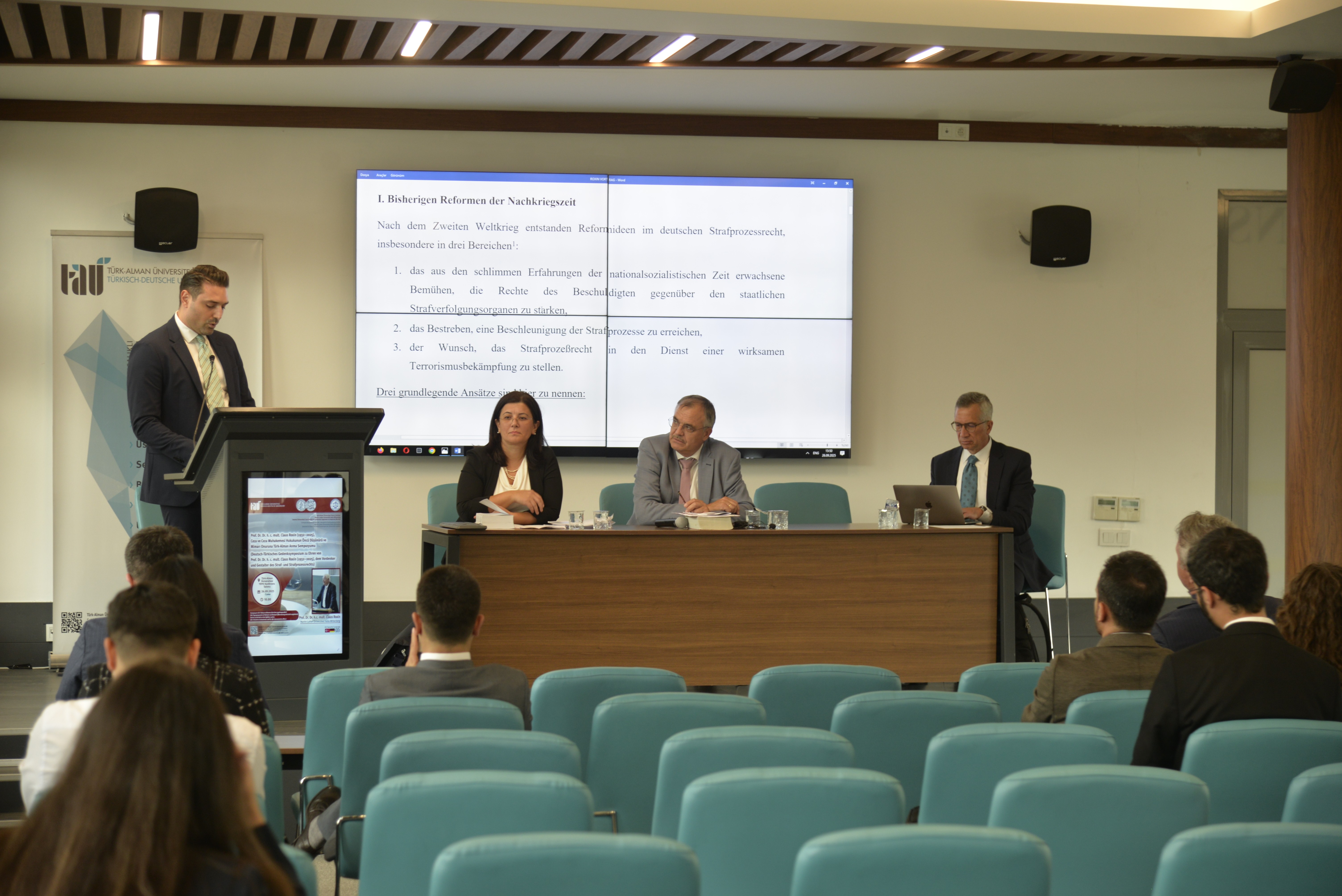 Fakültemiz Ceza ve Ceza Muhakemesi Hukuku Anabilim Dalı tarafından, Martin-Luther-Universität Halle-Wittenberg ve İstanbul Üniversitesi Ceza Hukuku ve Kriminoloji Uygulama ve Araştırma Merkezi ile işbirliği içinde düzenlenen, Ceza ve Ceza Muhakemesi Hukukunun öncü düşünürü ve mimarı Prof. Dr. Dr. h.c. mult. Claus Roxin (1932–2025) onuruna Türk-Alman Anma Sempozyumu 26 Eylül 2025 Cuma günü gerçekleştirilmiştir. Sempozyumda Roxin’in ceza ve ceza muhakemesi hukukunun dönüşümündeki etkileri üzerine sunumlar yapılmıştır.